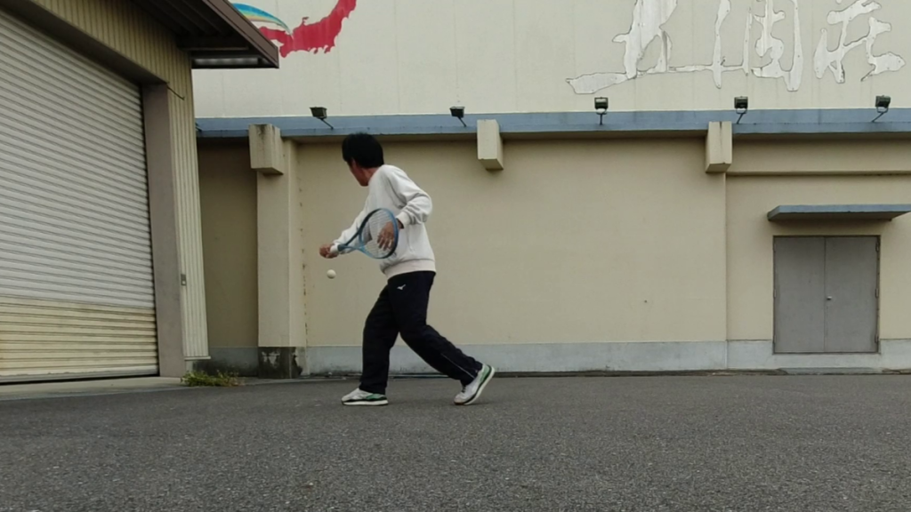 YouTubeで硬式テニスの動画でレクチャーされてたことをやってみたくなり、近くの壁へ。