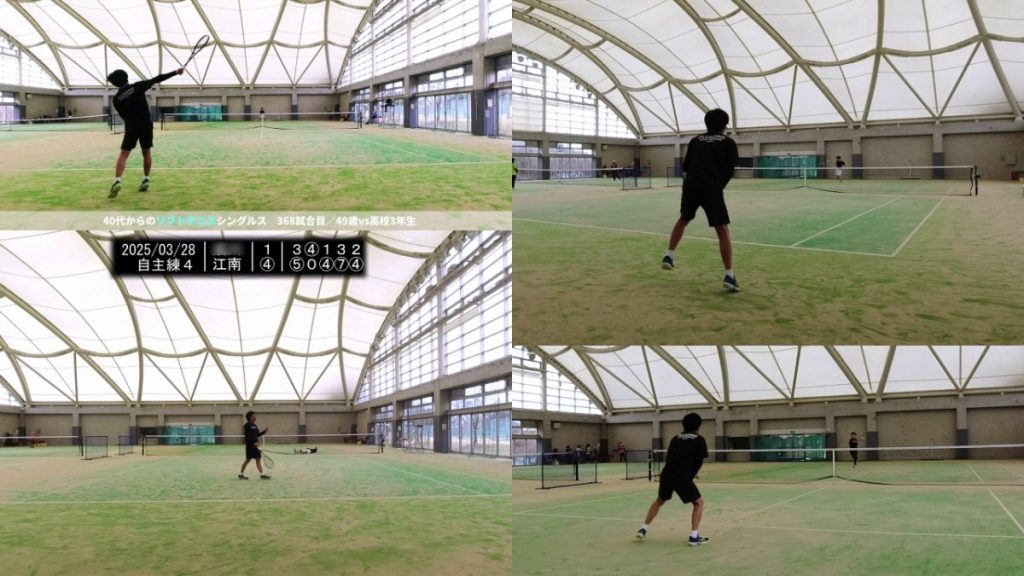 いつも通り、ボレーボレーして乱打してシングルスです。