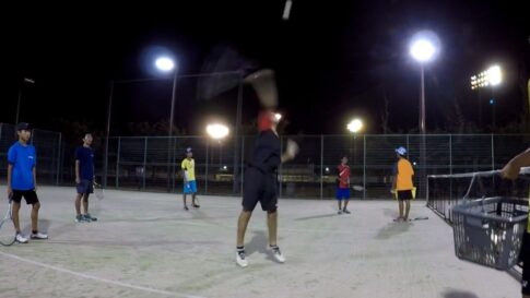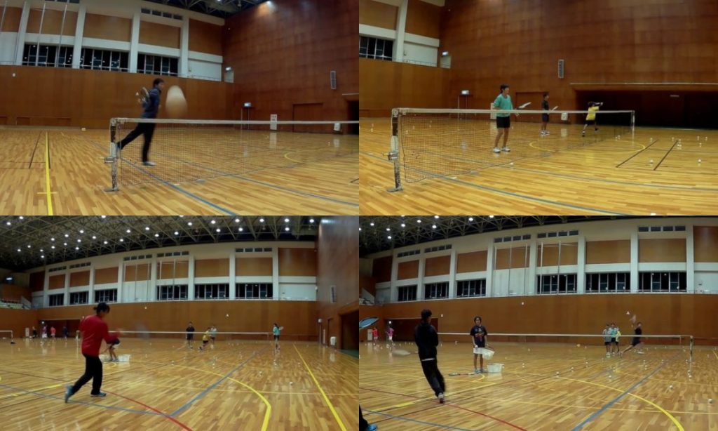 今回はAコート、Bコート、上からとビデオカメラ三台で撮影してみました。(いつもは二台)自分のフォームの確認、他のプレーヤーとの比較、復習をしてもらうために撮影・共有しています。見なくてもいいんですが、見たほうが「上手くなる近道」です。他の人が見てなければ自分は見て復習して見てない人と差をつけて(縮めて)やりましょう(^^)