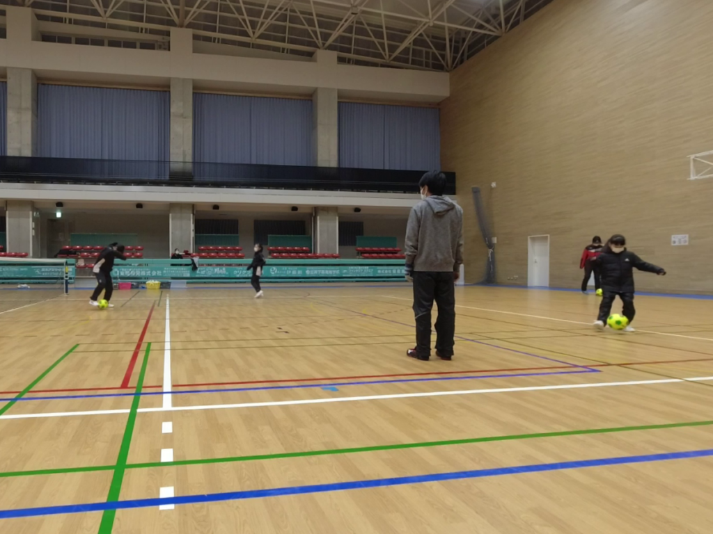 今回はサッカーボールを使ってボールコースに入る練習をしてみました。実際に打つ動作をしながら非利手でボールをキャッチする練習もしてみました。