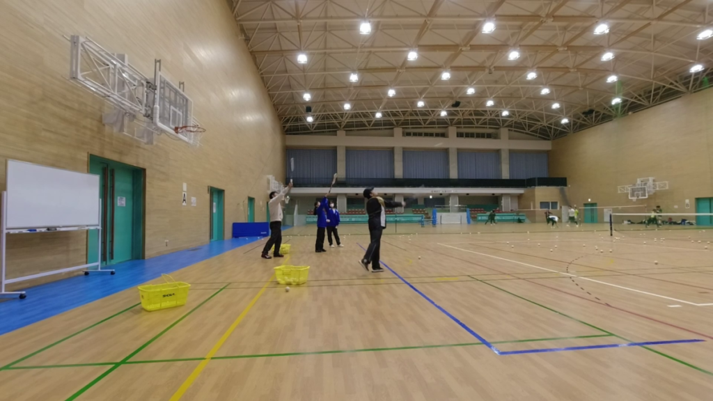 土曜日夜間の基礎練習会は中学生が多く参加してくださっています。コートが一面で参加人数も多い為、基礎練習メニューで構成しています。