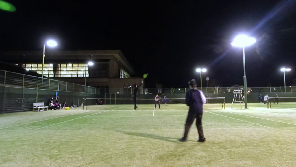 日中はものすごい風だったので夜はどうかと心配でしたが、無風でソフトテニス日和でした。