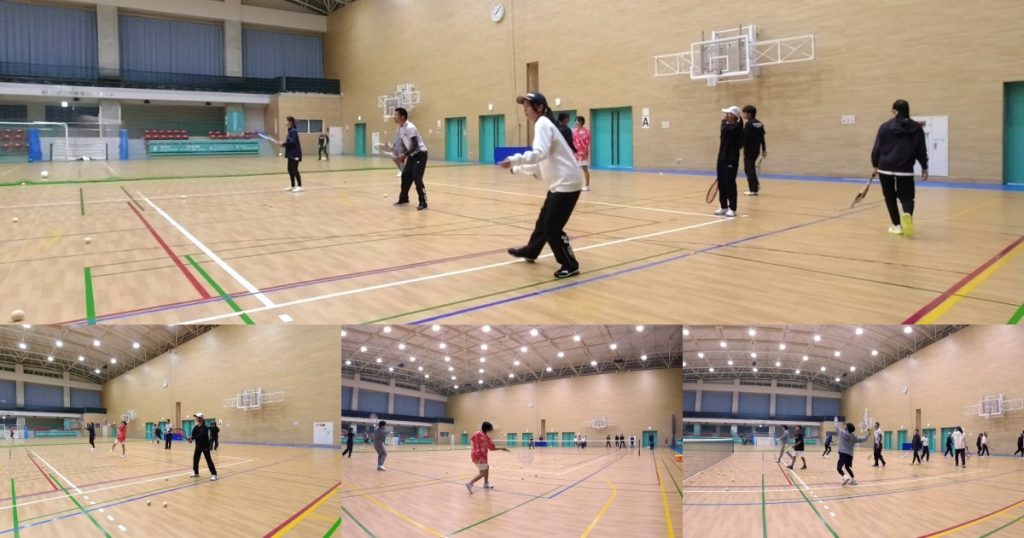 | 持物 | ソフトテニスが出来る格好、水分、室内用シューズ |