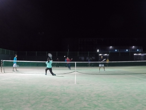 水曜しか来れない人もいるのでストロークやボレーの基礎練習をしてから、試合でよくあるシチュエーションを説明しながら応用練習をして試合形式をします。