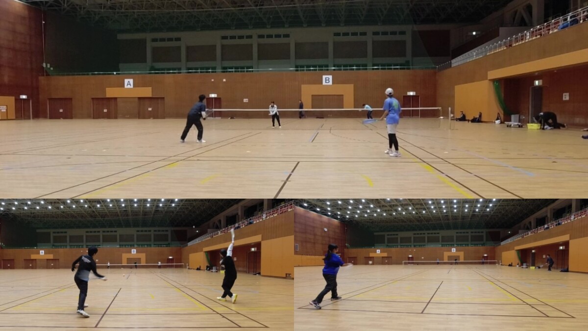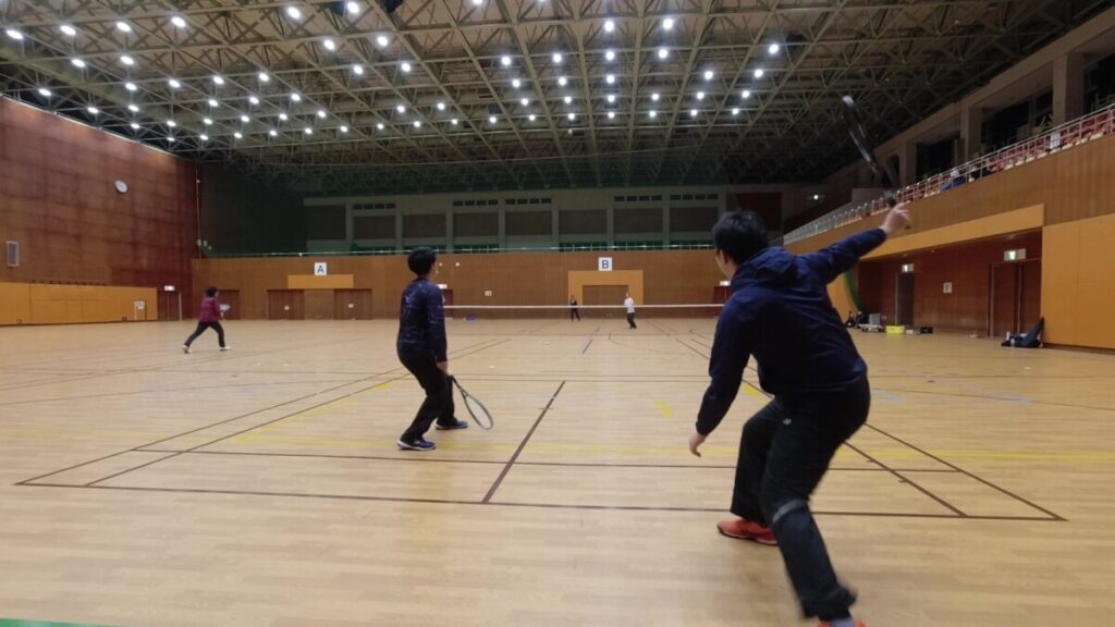 駅前のテニスコートで電車組を確保しようかと思いましたが、天気が不安定なのでやっぱり体育館開催にさせていただきます。