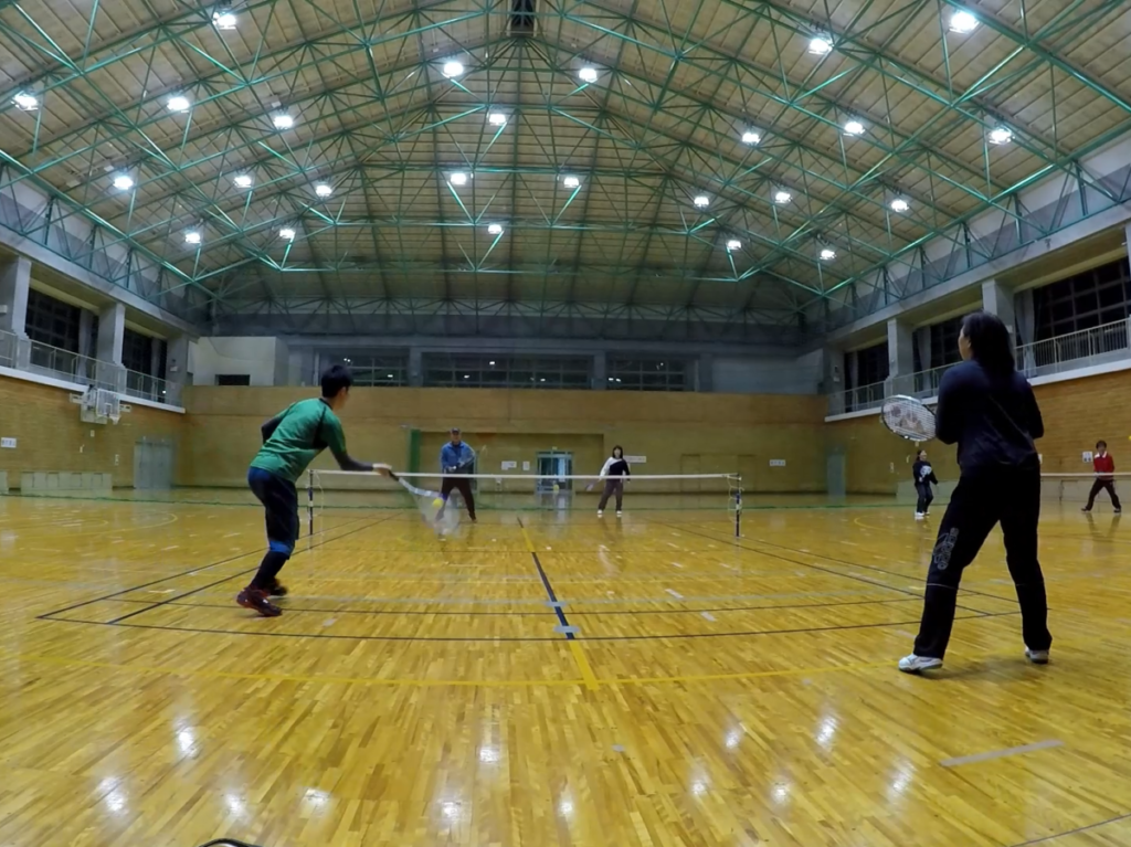ラケットスポーツが初めての方でも比較的簡単です。ですが、狭いコートでテンポも早い為、運動量豊富なスポーツです。