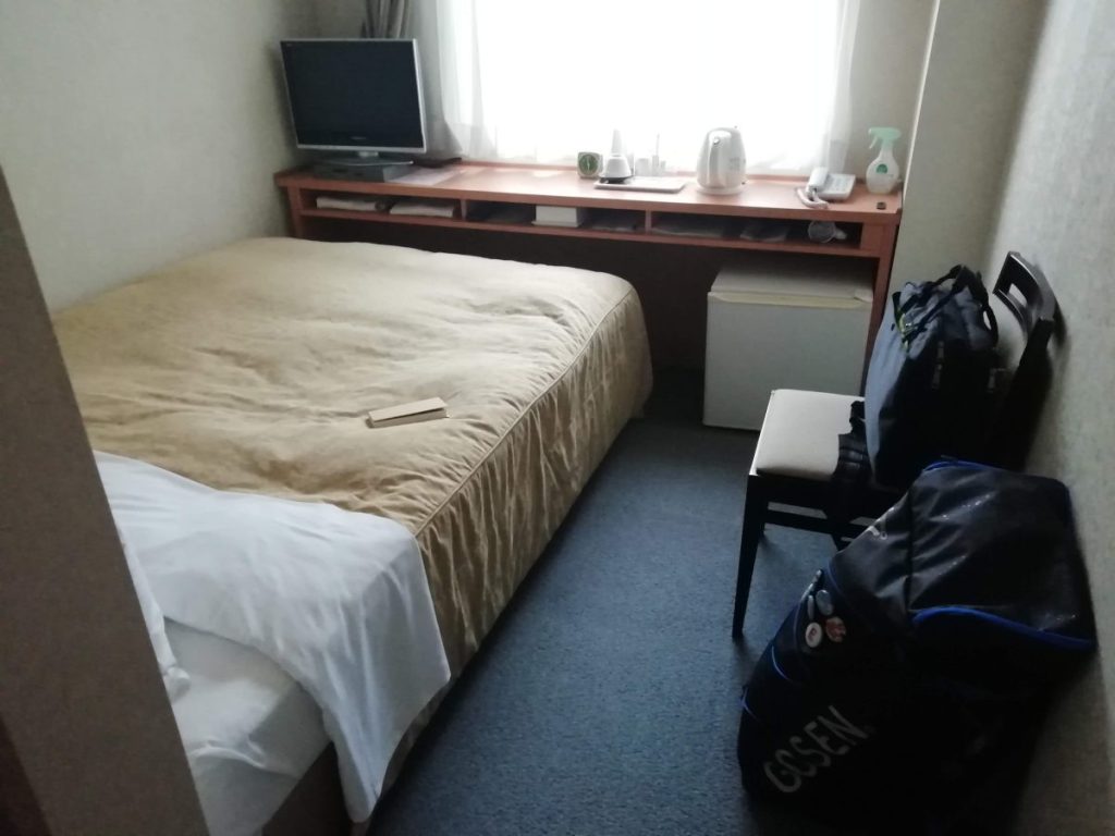 道中、チラホラとGOSENのシャツを着てるソフトテニスプレーヤーを発見してソワソワしながらホテルに到着・チェックイン。なんか見たことのある景色やなぁと思ったら、なんと、2年前に泊まったホテルの隣でした。ビックリ。