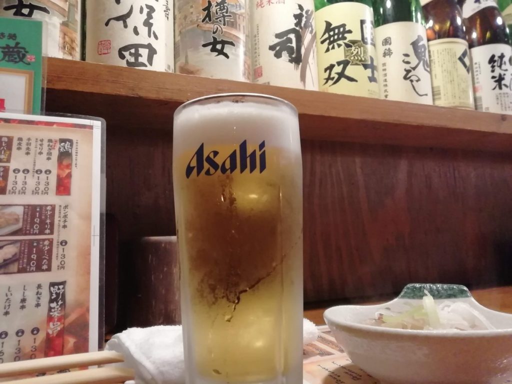 狙ってたラーメン屋が19時からで空いてなかったので周辺をウロウロしてたら「19時までハッピーアワー」と書いた看板を発見し入店。