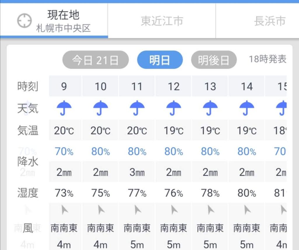 翌日の天気予報です。