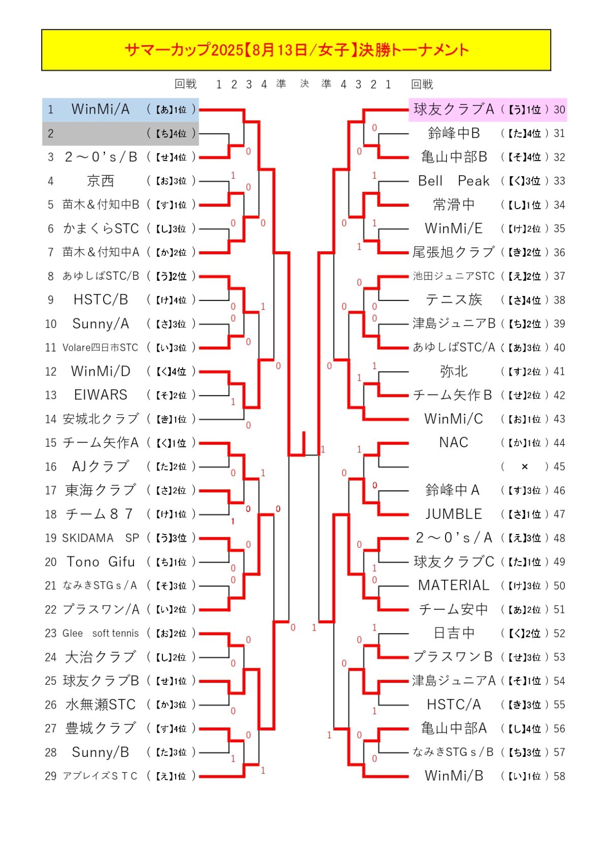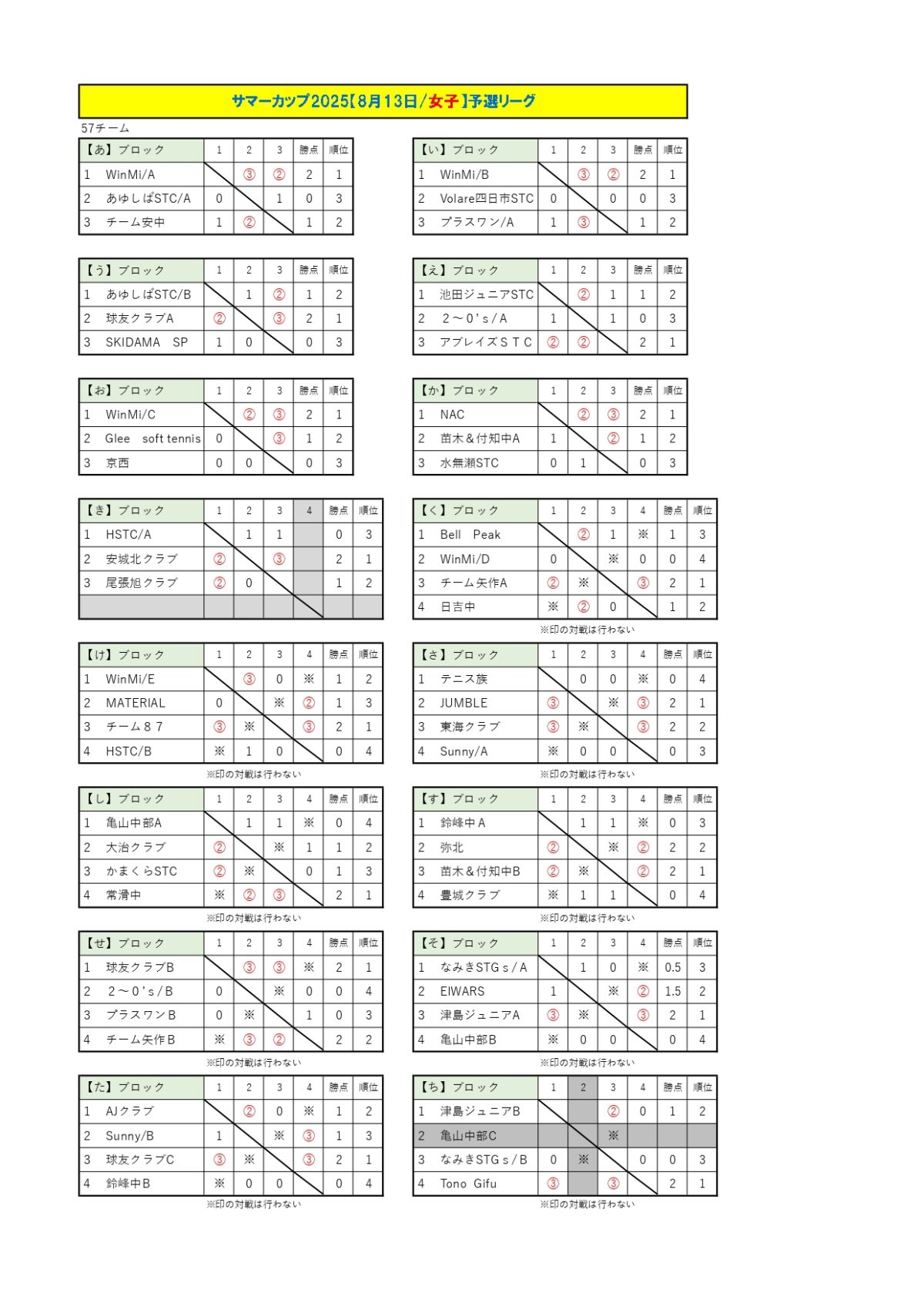 - Aチーム 予選リーグ1勝1敗、決勝トーナメントベスト8