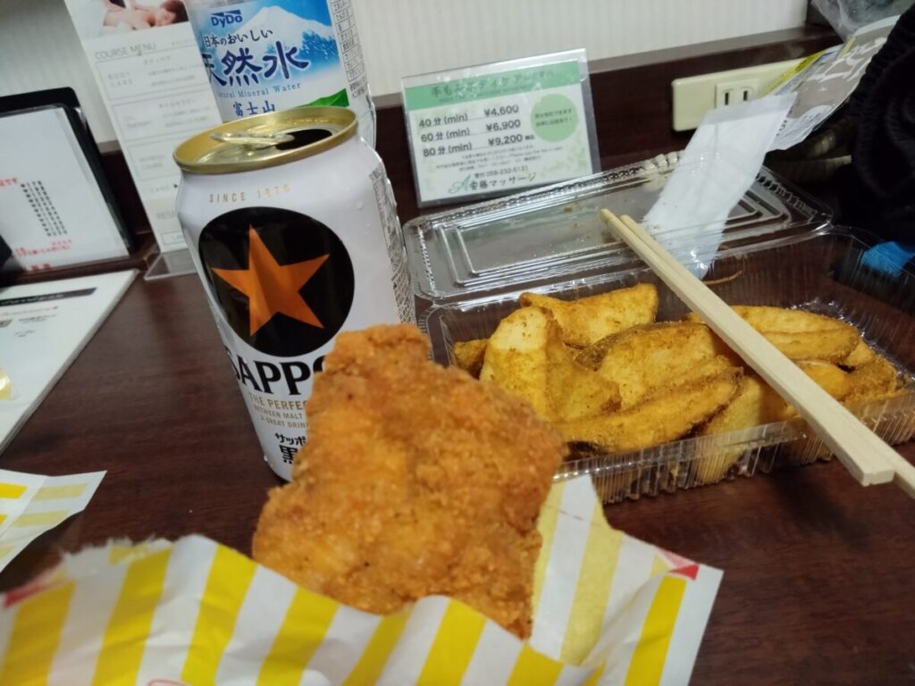 食事を終えて近くのコンビニで買い出し。久しぶりのビジネスホテルヒトリ飲み♪