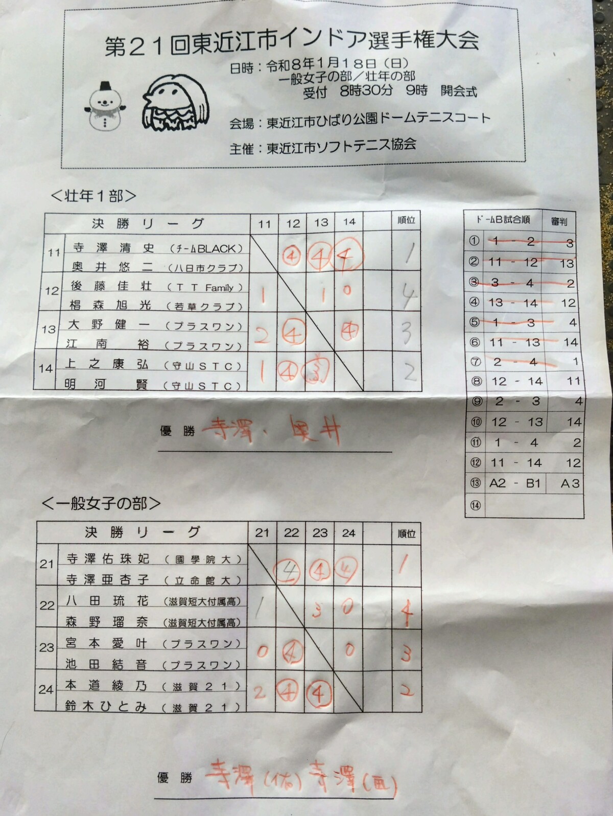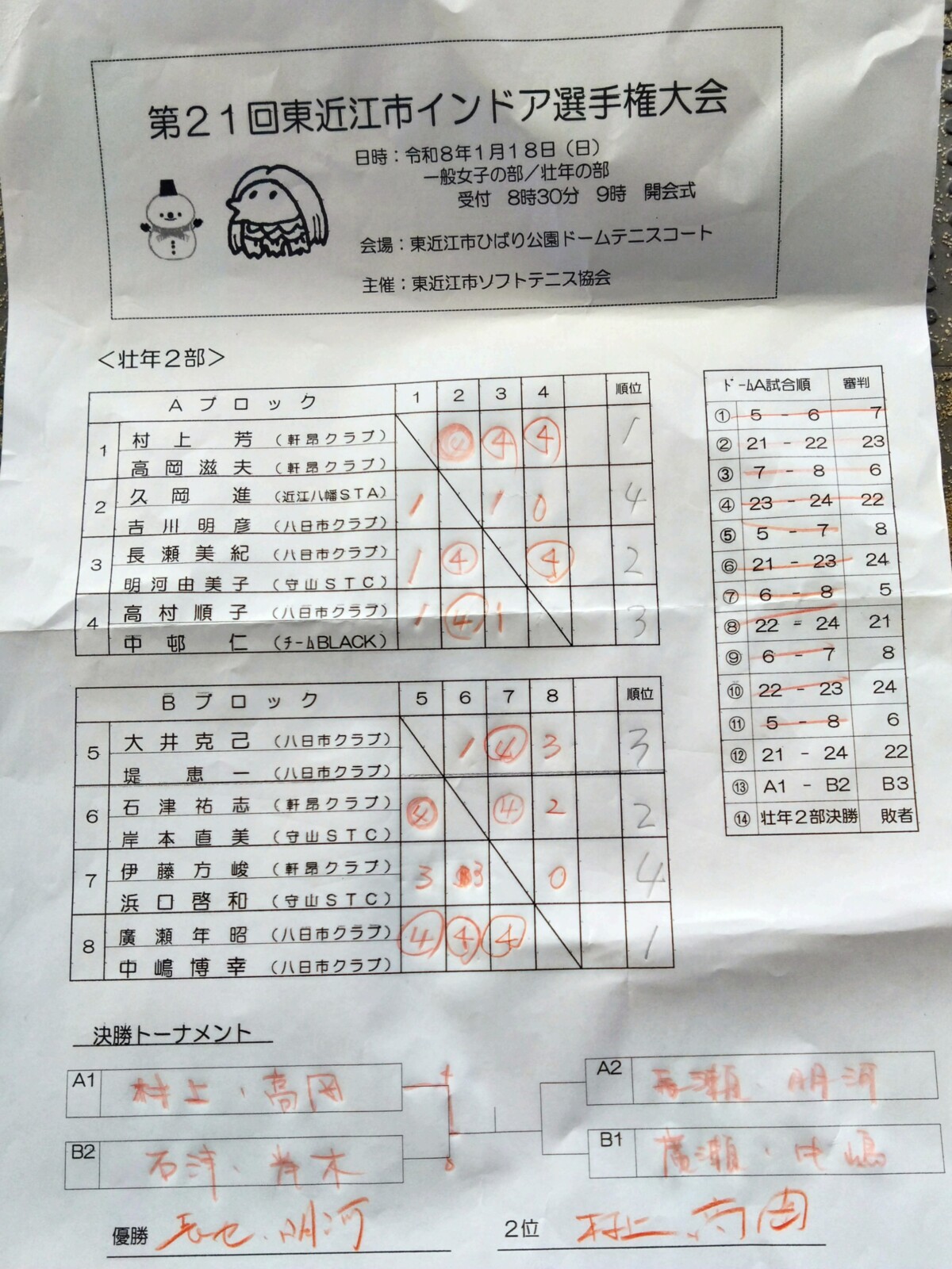 2026/01/18(日) 滋賀県東近江市ソフトテニスインドア選手権・壮年一部