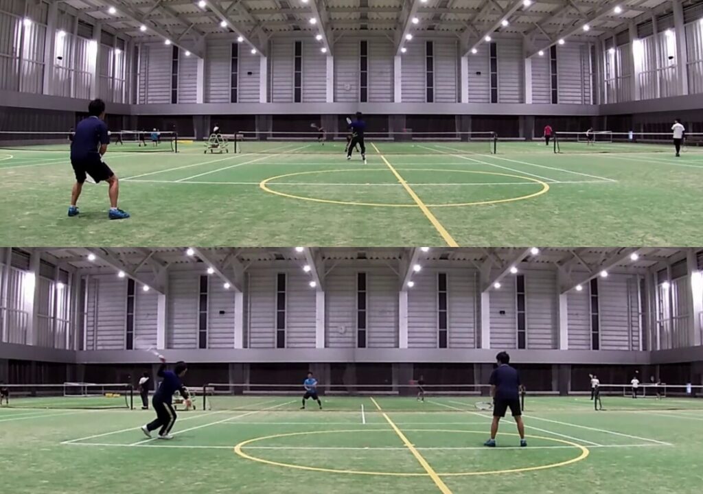 メンバー中心にペアを組み、ビジタープレーヤーの皆さんと対戦しています。